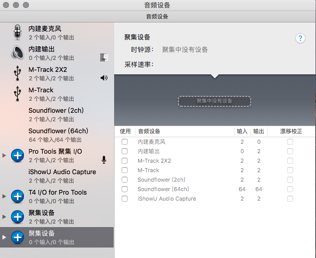 打开电脑的音频MIDI设置程序,点左下角“+”创建聚集设备