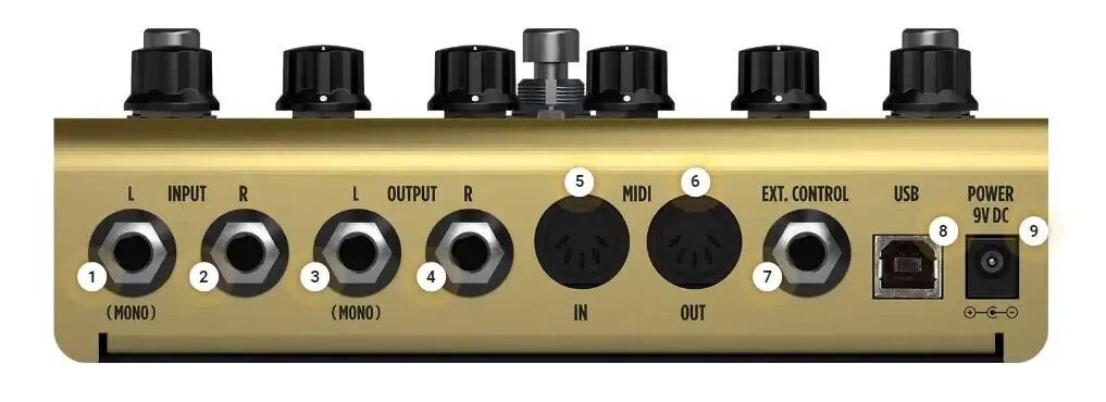 由 300 个预设插槽(50个出厂预设音色)、八个旋转调节编辑器、顶部面板上搭载3颗踩钉开关