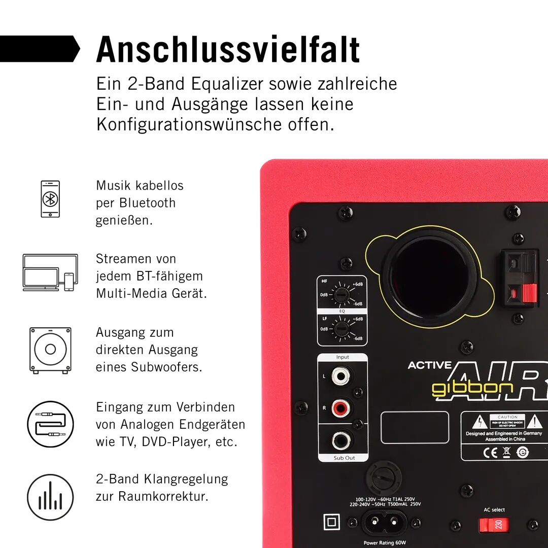 Gibbon 系列监听音箱可以通过控制面板进行不同的EQ参数调节和配置。Gibbon Air 的4英寸低音单元设计,虽然可以很好地展现低频响应,但当您有嘻哈和舞曲混音需求时,也可以通过Subout 接口添加外接一个低音炮,最大限度地提高工作效率。对于家庭影院爱好者,请尝试采用环绕声配置连接方案,也许您获得多媒体的音频电影效果带来的一个"惊喜"