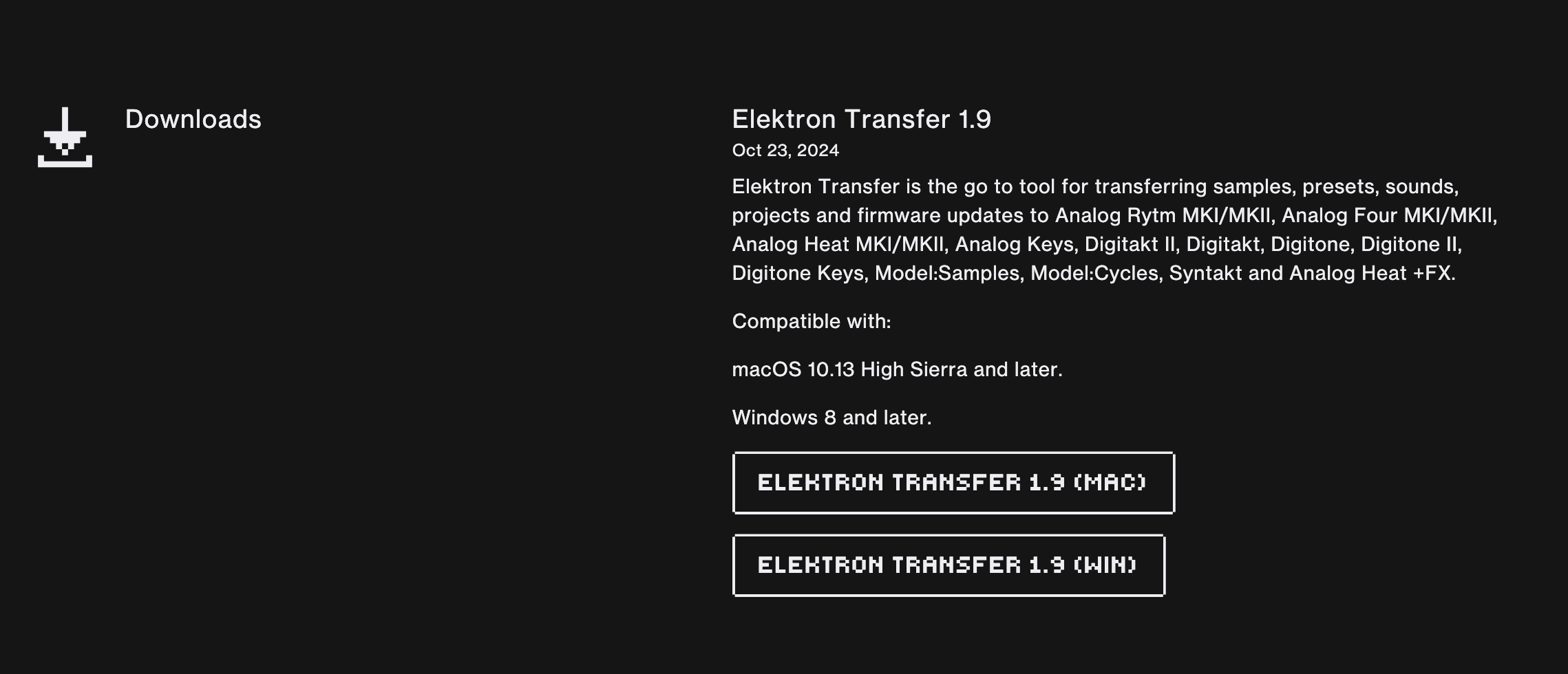 传输OS syx文件需要使用 Elektron Transfer 软件,软件免费,可从 Elektron 官网直接下载: