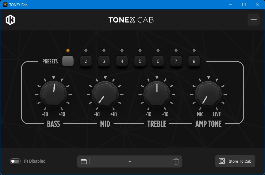 TONEX Cab 内部可存储 8 组预设,每一组都可以是完全不同的 IR 与 EQ 设置,并且支持多种切换方式: